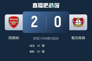 体育资讯3月18日讯 欧冠1/8决赛次回合,阿森纳主场2-0击败勒沃库森,两回合总比分3-1淘汰对手,晋级八强。