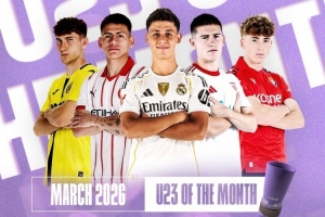 体育资讯3月19日讯 西甲官方公布联赛3月最佳U23球员候选,居莱尔、埃切维里等5名球员获提名。