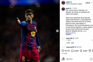 体育资讯4月15日讯 欧冠1/4决赛次回合,巴萨客场2比1击败马竞,最终以总比分2-3出局。赛后,佩德里更新社媒感叹世事并非总能如愿。