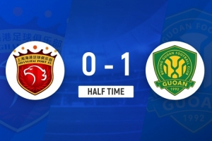 半场-海港0-1国安 达万解围险乌龙+世界波破门 克劳德中柱