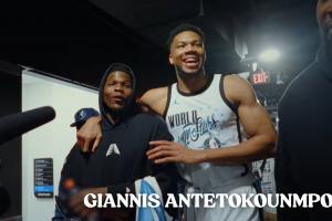 全明星赛期间,爱德华兹在球员通道与字母哥相遇,两人击掌打招呼后,勾肩搭背交谈着: